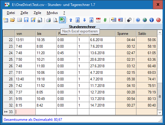 Die Software funktioniert wie eine für die Zeiterfassung optimierte Tabellenkalkulation. Sie ist auf maximale Bedienungsfreundlichkeit getrimmt. Zum Beispiel können Daten verkürzt eingegeben oder durch Drücken der Plus- bzw. Minustaste verändert werden. Bei Betätigung der Enter-Taste wird das nächste Feld angesprungen.